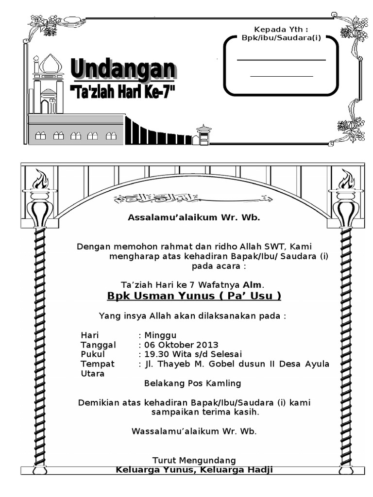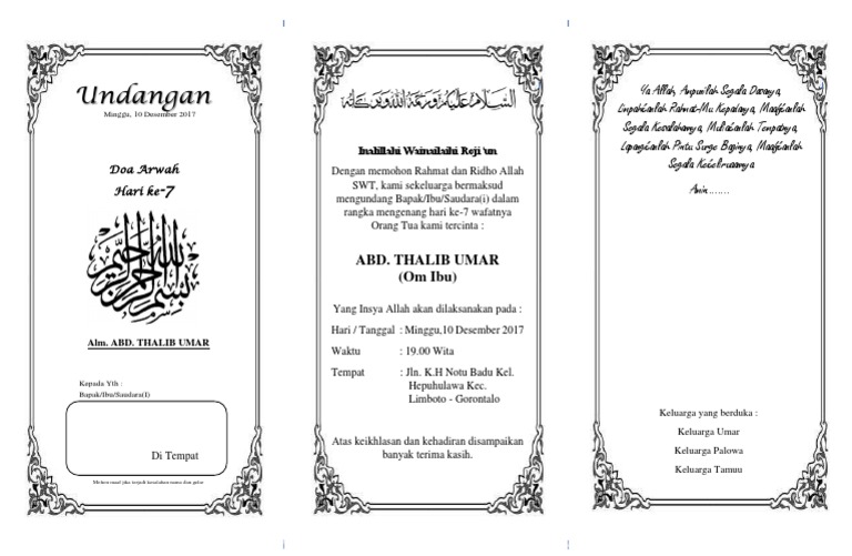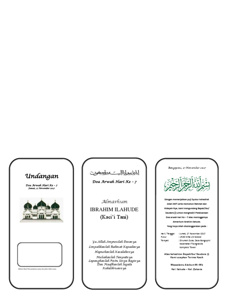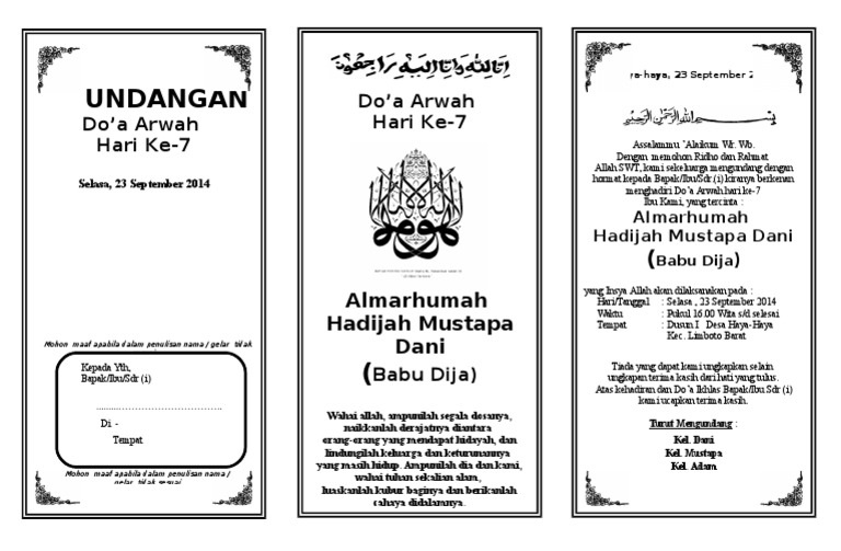 Undangan Doa Arwah Hari 7 Pa Usu Pdf